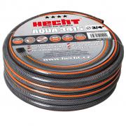 HECHT AQUA on vastupidav kolmekihiline PVC-voolik, mis on valmistatud pehmendatud PVC ja sünteetiliste kiudude survepunutise kombinatsioonist. Sisemine must kiht hoiab ära vetikate tekke ja kaitseb UV-kiirguse eest. Sünteetiliste kiudude keskmine kiht annab voolikule kõrge survekindluse. Sile väliskiht tagab kõrge kulumiskindluse ja voolik libiseb paremini maapinnal. Voolik on väga stabiilse kujuga.