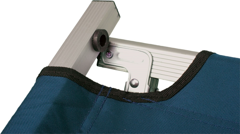 Kangas: kvaliteetne ja tugev 600D polüester. Raam kaetud PVC kattega, vastupidavad kolm tugijalga on poleeritud alumiiniumist; mõõdud: 189 x 64 x 42 cm. Kandevõime max. 120 kg.