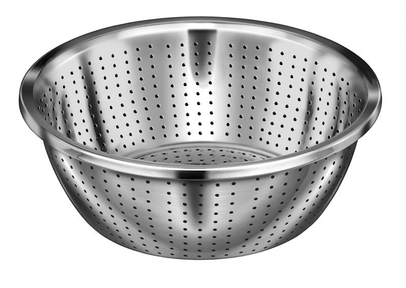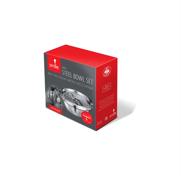A steel bowl with a set of graters and a removable colander SAK-6 is a practical and functional set that will be useful in any kitchen. It consists of a steel bowl, a colander, and a lid with graters for fine and coarse grinding and slicing (flat and notched).
