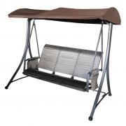 Garden swing with metal frame and textile fabric. Suitable for covered garden areas and exteriors. Three seats. Max. load: 240 kg. Dimensions (L x W x H): 130 x 185 x 170 cm.