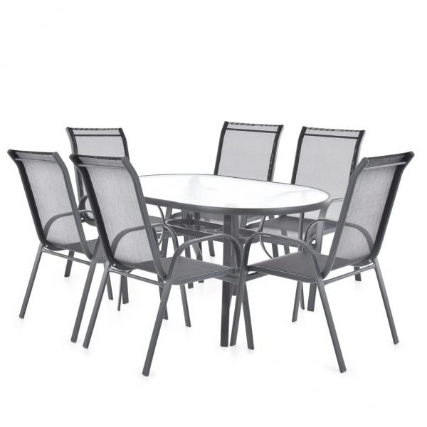 Garden furniture made of composite steel-aluminum profiles. Set of six chairs and table.