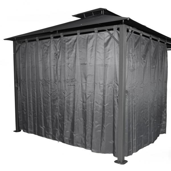Luxurious gazebo with aluminum steel construction and high-quality polyester coating.