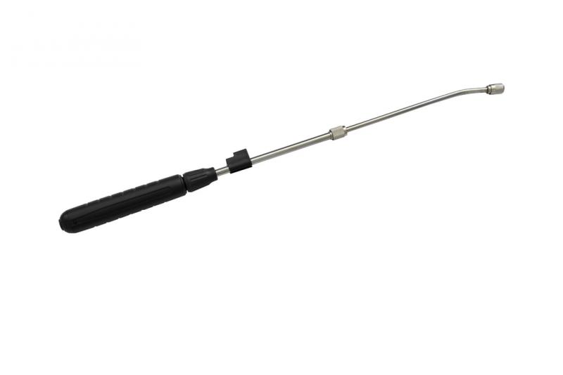 Battery-operated pressure sprayer. Telescopic tube with nozzle (length up to 60 cm). Up to 120 minutes per charge. Maximum pressure 2 bar. Tank 5l. Weight 1.1 kg. Battery capacity 2.5 Ah. Approximate charging time 240 min. Thanks to the adjustable nozzle, spraying is precise. It is suitable for processing individual plants as well as for use in smaller areas.