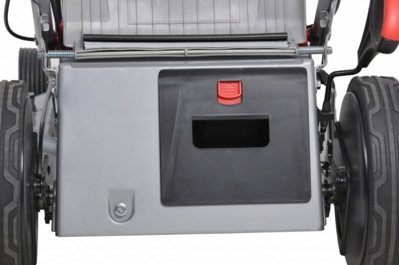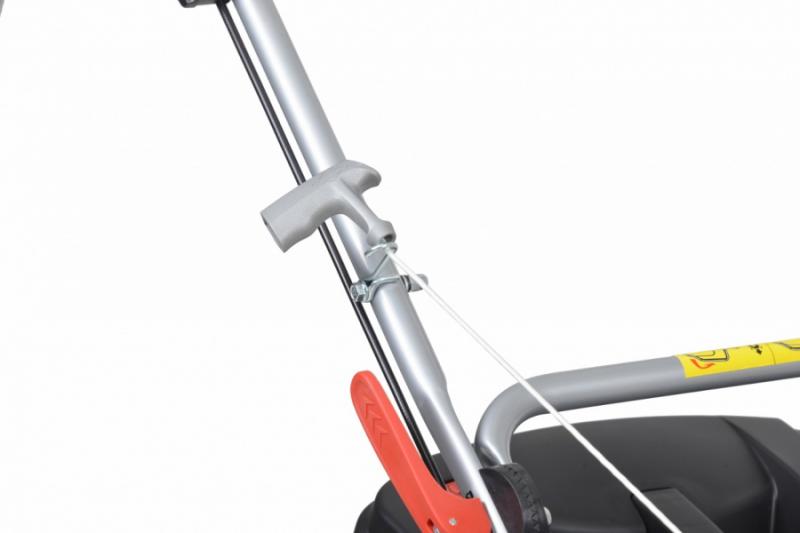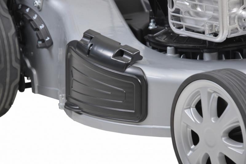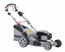 Self propelled petrol powered rotary lawn mower with aluminium chassis, equipped with ball bearings. Powered by 4 stroke engine Briggs&Stratton Series 675 EXi with displacement of 163 cm3. Working width 51 cm. Central adjustment of cutting height 25-75 mm. Mulching kit included, alternative side ejection. 4 speeds 3-4,5 km/h. Metal chassis. Handle height adjustment. Patented wheels design. Weight 37 kg.
