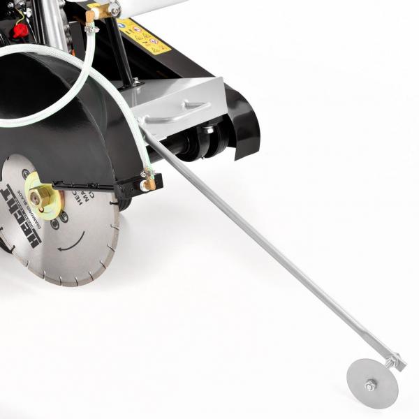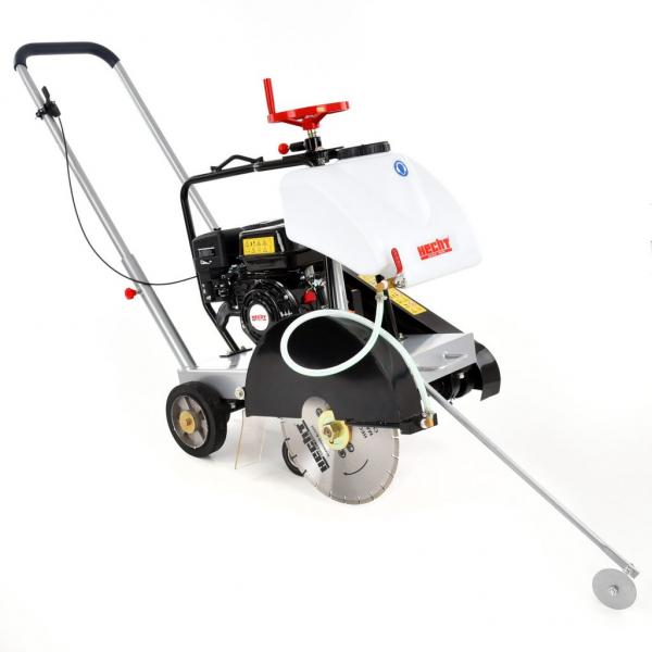 Chainsaw for cutting asphalt and concrete with OHV engine Loncin with a volume of 196 cm3. Possibility of wet and dry cutting. Wheel diameter 350 mm / 14 ". Water cooling, water tank volume 14 liters. Supplied with water tank and guide wheel. Dimensions (L x W x H): 123 x 57 x 94 cm. Weight 102 kg.