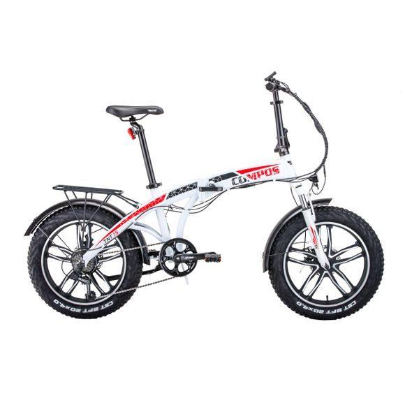 Foldable electric bicycle with motor power 250 W. Li-ion battery 36V / 10 Ah. Battery charging time 4-6 hours. Charger included. Wide tires 20 ". Can also be ridden in snow and off-road (Fat Bike - Snow Bike). Luggage rack. Electric range up to 60 km depending on the terrain. Seven-speed Shimano transmission. Suspension front fork. Max. and taillights TEKRO ARIES disc brakes The battery is inside the wheel frame, which can be removed (the battery can be locked into the frame with a key) Five-speed cruise control Weight 26 kg Load capacity up to 105 kg.
