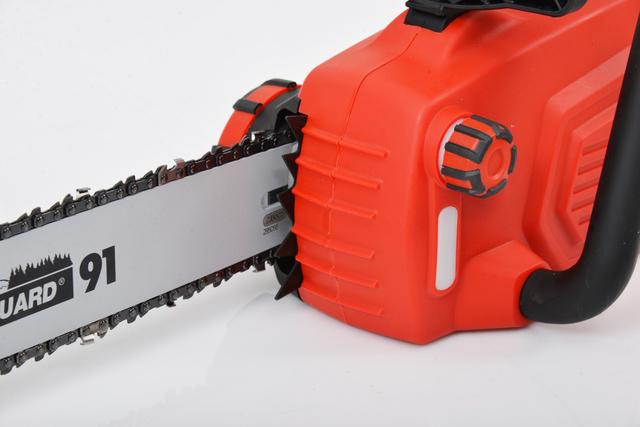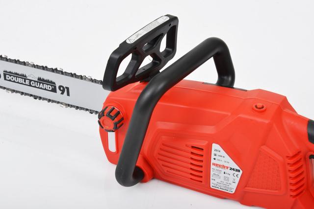 Electric powered chainsaw with power input 2400W. Equipped with 40 cm OREGON bar with micro 3/8“ chain. Quick bar/chain demounting. Sofy Start. Weight: 5 kg.