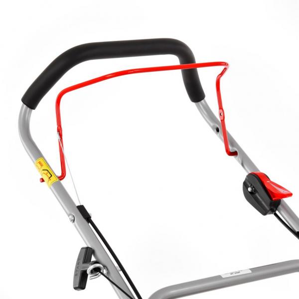 Petrol powered rotary lawn mower with steel chassis. Powered by LONCIN OHV 4-stroke 150 cm3 engine. Working width 46 cm. Height adjustment: Central, 25 - 75 mm. Collecting box: 55 l. Weight: 27,2 kg. Wheels front 7 "/ rear 10".