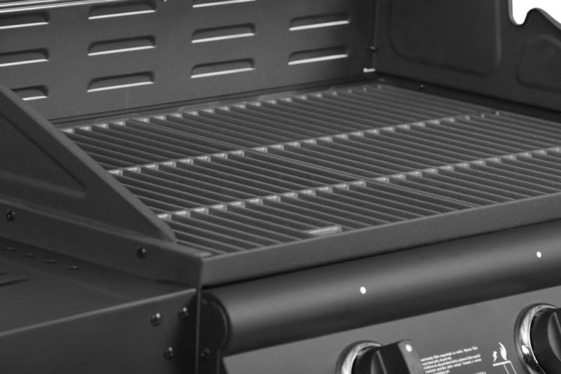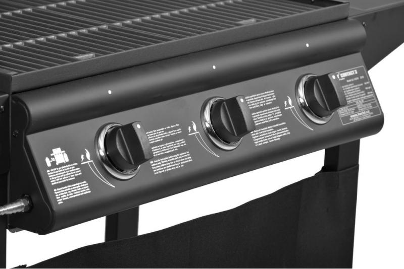 Gas grill - suitable for sheltered garden areas and exteriors. 3 burners, 2x enamel wire grill. Packing size: 835 x 625 x 310 mm.