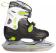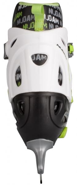 Model: three section moulded boot, adjustable in 4 sizes by push button at the heelpart, 2 two-sided quick fasteners with lock, secured by way of a simple to replace screwable fixation, detachable inner shoe of polyamide mesh (floral pattern) with polyester lining, synthetic blade holder with stainless steel ice hockey skate blades.