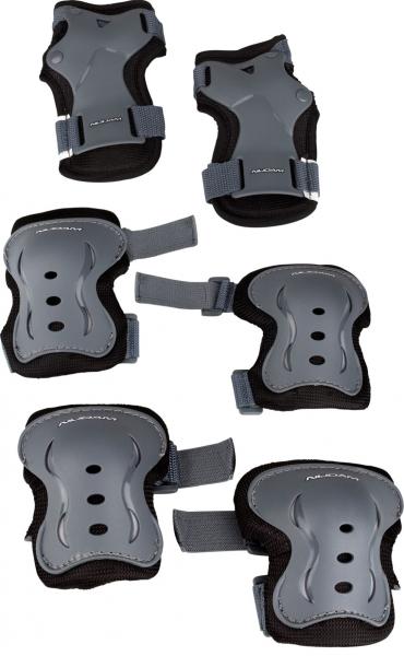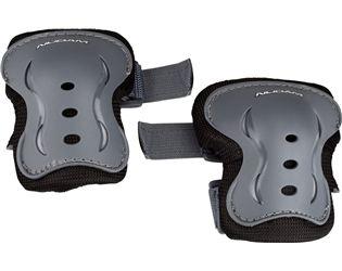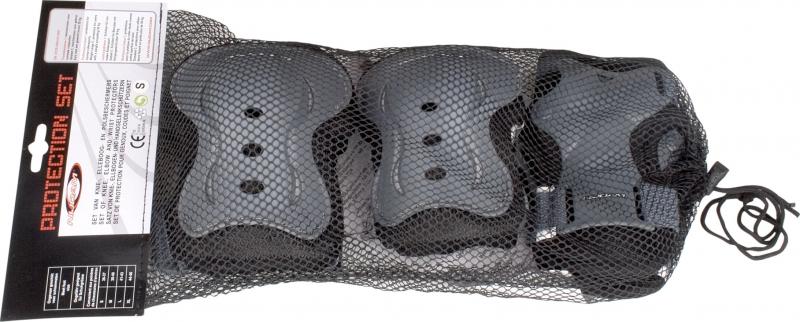 Quality: EVA foam with 3D mesh and PP high impact caps. Contents (set): 1 pair wrist-, elbow- and knee pads. Size L. Colour: Grey. (L = foot size 41-43)