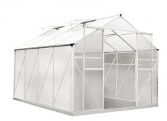 Strong ALU frame, polycarbonate plates. Base included galvanized steel. Area: 7.44 m2, Width: 250 cm x Depth: 305 cm x Height: 244 cm.