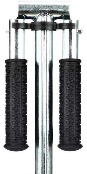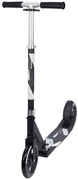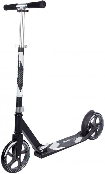 Quality: frame - full aluminium, anodized silver, deck - aluminum with grip tape, handgrips - foam. Model: scooter with foldable/telescopic handle bar, detachable foam handles, rear foot brake, spoke wheels (200 x 34 mm), ABEC 5 bearings, peak load approx. 100 kg. Weight approx. 3.80 kg. Dimension: frame - 87 x 34 x 87/97 cm. Height: handle bar is adjustable in 3 heights 87 > 92 > 97 cm.