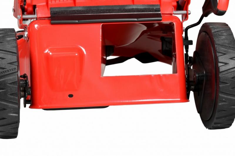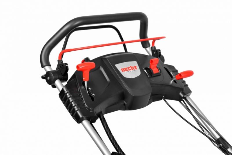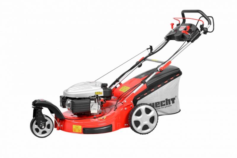 Self propelled petrol powered rotary lawn mower with steel chassis, equipped with ball bearings. Powered by 4 stroke HECHT OHV engine with displacement of 173 cm3, 6 HP. Working width 56 cm. Collecting box 60 l. Central adjustment of cutting height. Mulching kit included, alternative side ejection. Electric starting. Speed 3,5-4 km/h. Wheels front 8"/rear 11". Patented wheels design. Weight: 46 kg.