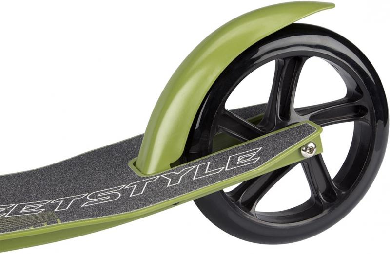 Alumiinium raam ja jalaalus. Jalaalus 34 x 13 cm, libisemisvastase kattega. Käepidemed kummist. Kokkupandav/ teleskoopkäepide. Käepideme kõrgus reguleeritav 85 > 97 cm. Kummist käepidemed eemaldatavad. Esirattal porikaitse. Tagumine jalgpidur. Ratase materjal PU, kodarvelgedel : esimene ratas 230 x 32 mm, tagumine ratas 180 x 30 mm. ABEC 7 laagrid. Kandevõime max 100kg. Kaal ca. 4,9 kg.