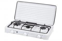 Table top gas stove; 3 gas burners - 1,83 kW + 1.38 kW + 0.93kW; Dimensions: W 614 x D 372 x H 83 mm; Weight 3.9 kg; Stove lid.