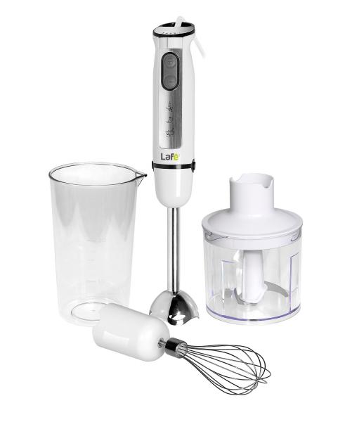 Bowl (400 ml) with stainless steel knife for grinding, chopping, perfect for meat, cheese, fruits, vegetables, nuts mixing attachment for coctails, soups, puree, high temperature resistant. Stainless steel leg. Whisking attachment for eggs white and light sauces. Bowl with lid (700 ml). Hanger. Ice crushing function - „TURBO” function.5 speeds. 230 V ~ 50 Hz. Power: 500 W.