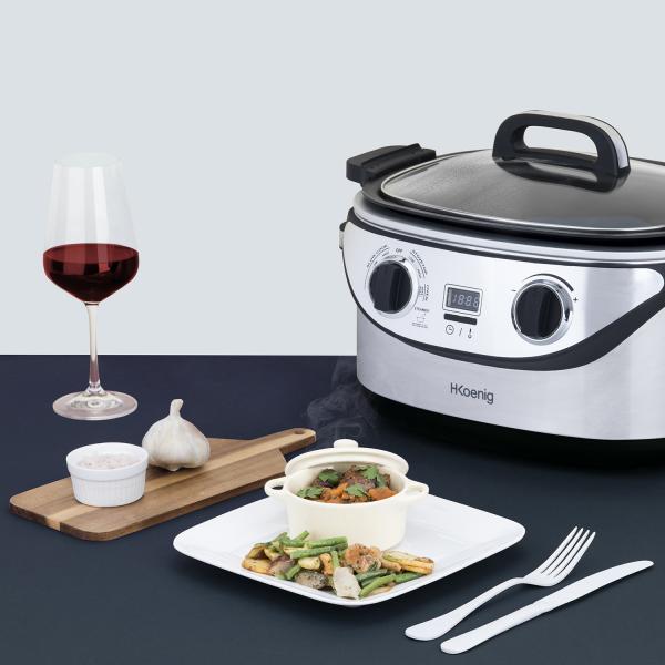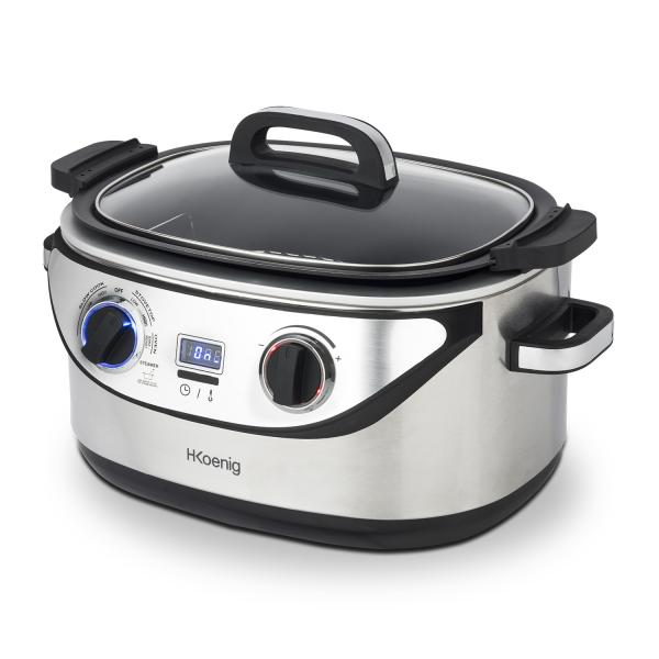 The multifunction electric slow cooker SLCOOK30 will ensure healthy, simple and tasty meals with its slow cooking function and its numerical timer. Versatile, you can use its 7 preprogramed functions: Cooking program to sear and grill, slow cooking, steam cooking, stew, oven and choose your temperature from 60°C to 220°C. Practical, you can prepare all your meals in advance with its heat retaining function for up to 12 hours. Useful, thanks to its Removable aluminium 5,6 litres bowl and non-stick coating your food doesn’t stick to the sides, the cooking process is homogenous and you can easily decant and drain your preparations. In addition to in versatility, the SLCOOK30 has an elegant design with its digital screen and backlit control buttons.