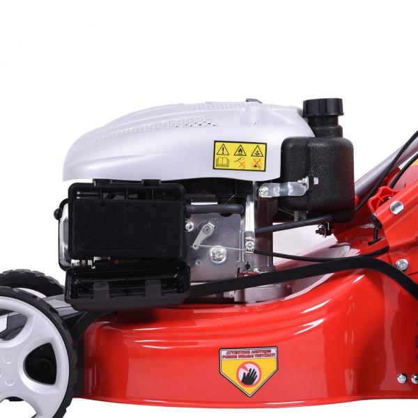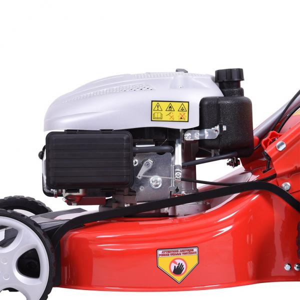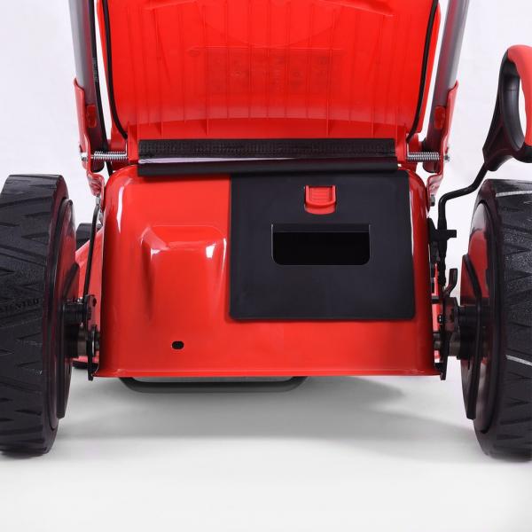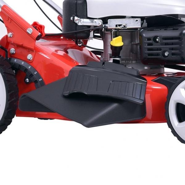 Self propelled petrol powered rotary lawn mower with metal chassis, equipped with ball bearings. Powered by HEHCT OHV 4-stroke 135 cm3 engine. Working width 46 cm. Height adjustment: Central, 25 - 75 mm. Collecting box: 60 l. Weight: 35,6 kg. Mulching kit included, alternative side ejection. Suitable for areas of up to 1200 m2. Wheel diameter front / rear: 8"/ 11".