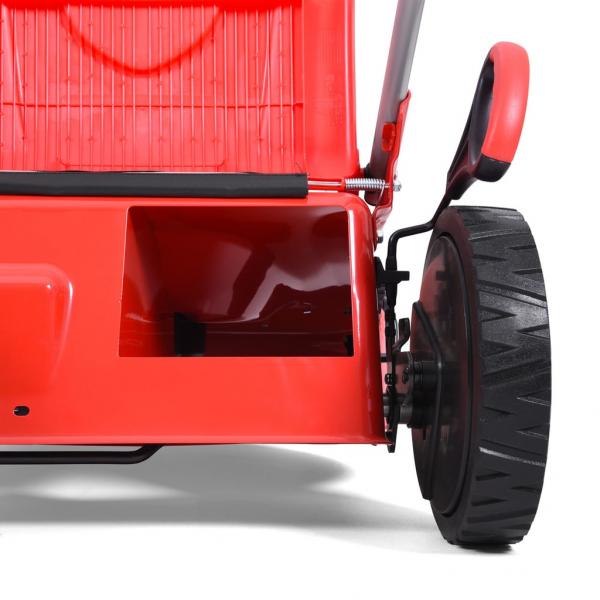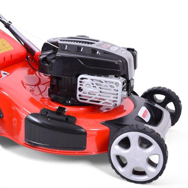 Self propelled petrol powered rotary lawn mower with steel chassis, equipped with ball bearings. Powered by Briggs & Stratton Series 875 EXi 190 cm3. Working width 56 cm.Height adjustment: Central, 25 - 75 mm. Collecting box: 70 l.  Weight: 37,2 kg, alternative side ejection. Wheels 8 "/ 11" (front / rear). Mulching kit included, alternative side ejection.