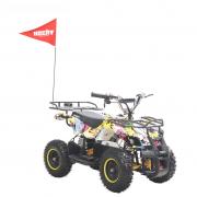 Electric ATV with 800 W engine. Power supplied by 36 V battery with 12 Ah capacity. Metal frame. Speed max. 20 - 25 km/h. Equipped with big 6" wheels. Weight 43 kg. Battery indicator, three speed switch, drive-chain. Max. driving range 13 - 18 km. Charging time 8 hours. Dimensions: length 110 cm x width 59 cm x height 60 cm.