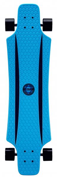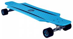High-grade, plastic 36 inch dropthrough deck, integrated reinforcement ribs, integrated grip profile, alu heavy duty truck with PU cushioning, top-mount axl montage, ABEC 7 bearings, PU spoke wheels size 70 x 51 mm. Smooth, highly comfortable riding properties, flexible hi-impact deck, excellent curve/carve capacity. Dimension ca. 91.5 x 23 cm.