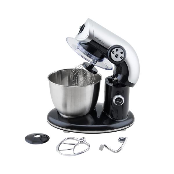 Its tilt-head design ensures an easy access to the mixing bowl. 4 speeds enable the robot to adapt to all preparations. It includes 3 accessories (whisker, mixer and dough hook) allowing you to achieve hundreds of recipes. The splashguard lid allow you to easily prepare your favorite recipes. You can add optional accessories to the arm to multiply its functionalities.