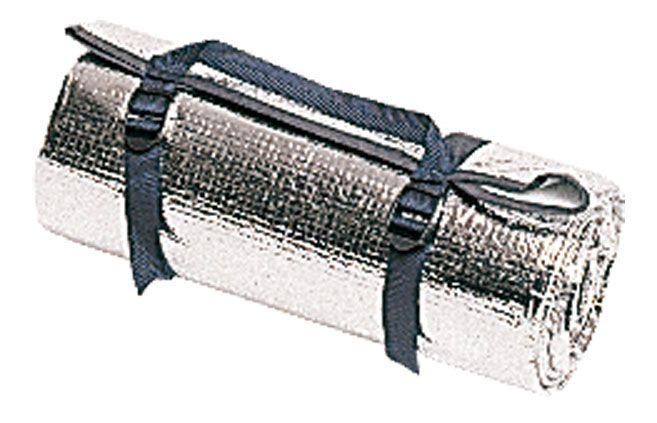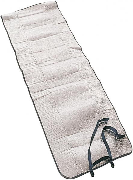 Foam, silver coated (1-zijdig) finished around with black piping. Reflects sunlight and stimulates tanning. Dimension:190 x 60 x 0.2 cm