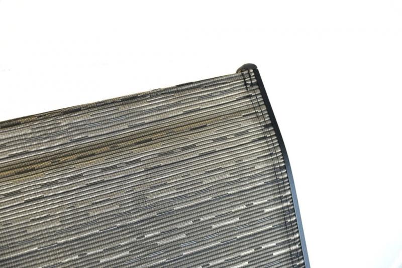 Combined set of six chairs (stackable) and a table made of aluminium profiles. Table with tempered black glass. Suitable for sheltered garden areas.