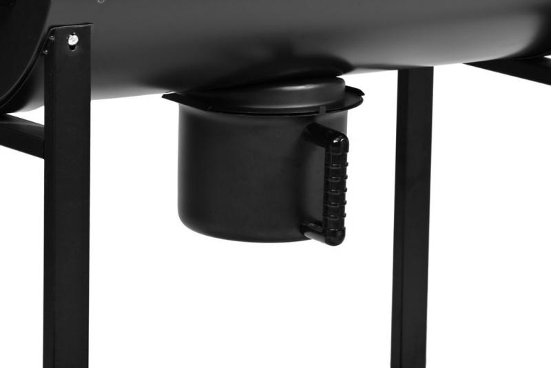 Coal grill made of durable sheet steel, painted black with heat-resistant paint, large work surfaces, wheels, ashtray