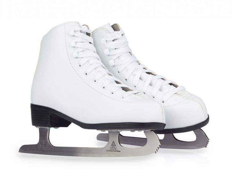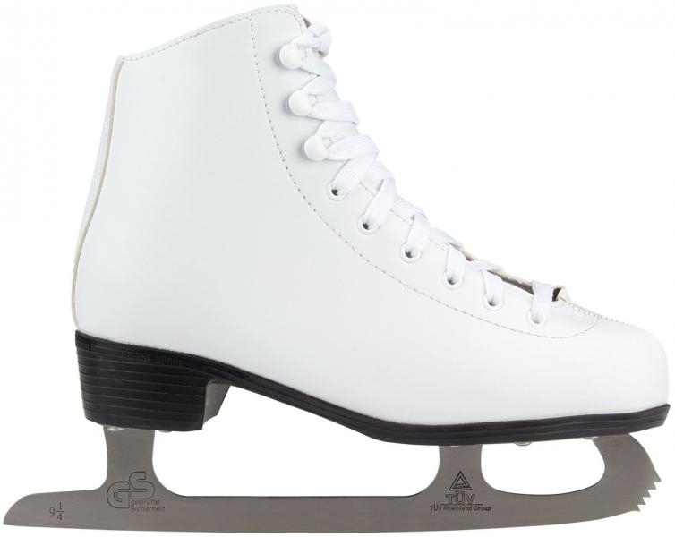Classic vinyl figure skate boot, clarino (soft artificial leather) lining, with lacing, riveted stainless steel figure skate blades. Size:42. The blades have been pre-sharpened!
