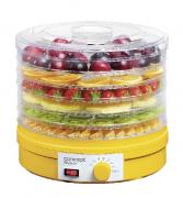 Food dehydrator. Using: fruits, vegetables, mushrooms, herbs, flowers, meat, fishes, pastries; Continuous temperature regulation from 35 to 70 ° C; 6 plates; Diam.: 32 cm; Noise level: 46 dB (A); Overheating fuse; Power: 245 W; Voltage: 220 - 240 V