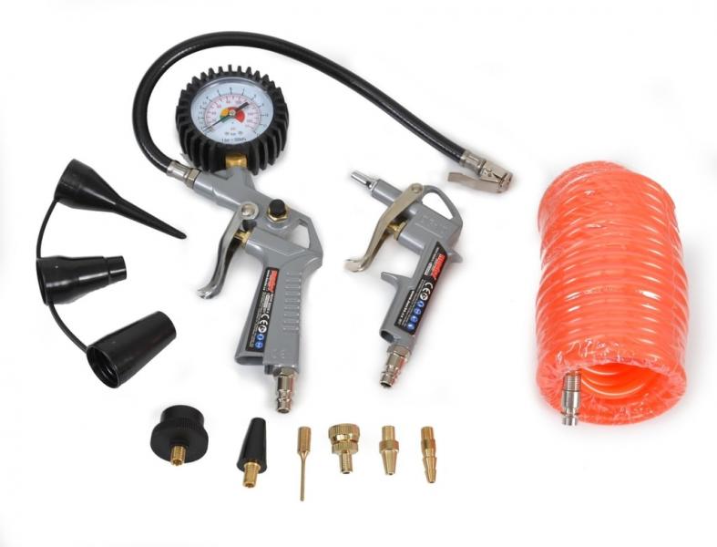 The hose 5 m, 4.1 "quick connector. Two gun, and different bits of mattresses, balls, etc. Suitable Hecht and other compressors.