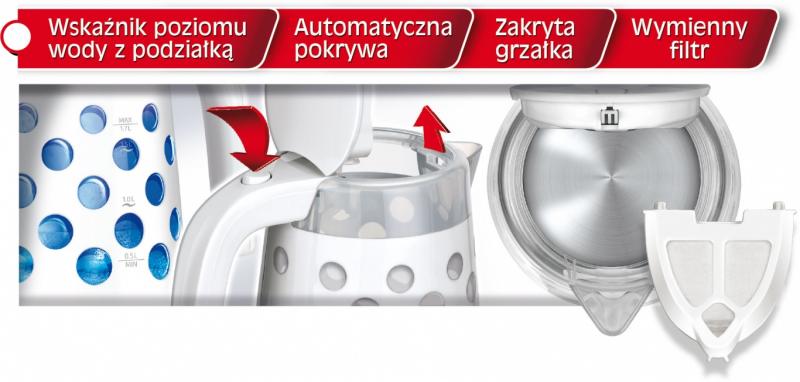 • Automatically turns off when water boils.
