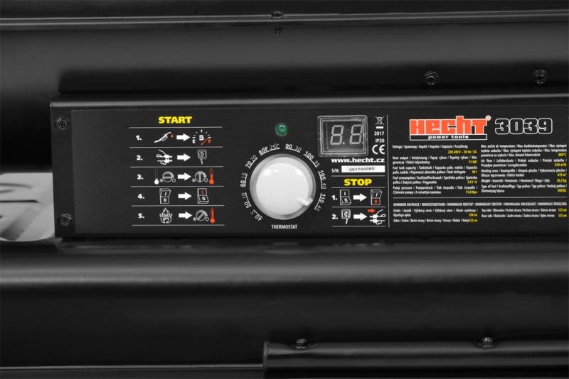 Kütusepaagi maht on 50 l, kulu on ligikaudu 5 l / h. Küttevõimsus on 175 000 BTU. Maksimaalne soovituslik pindala kütmisel on 415 m2. Võimsus 51 kW. Digitaalne temperatuurinäidik, termostaat, leegiandur, ülekuumenemiskaitse. Elektroonika ja ventilaatori toide: 230V / 50Hz. Kütuseks soovitatav kasutada diiselkütet. Tootel rattad ja käepide kergemaks transportimiseks.