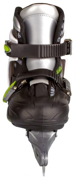 Klambritest reguleeritav, klambritel lukustussüsteem, sisu seest eemaldatav. Suurus: 34-37. Terad on eelnevalt teritatud. Tugevdatud materjalist saapad. Värv: must-valge-roheline.