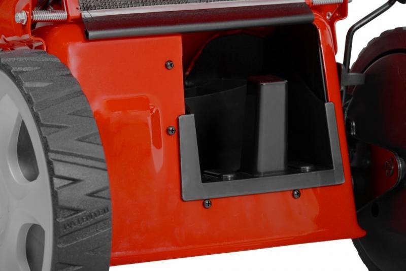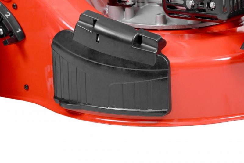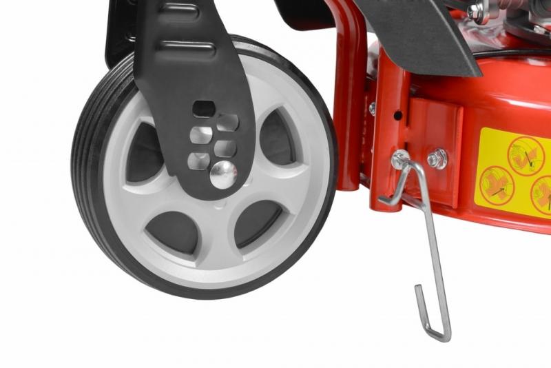 Isevedav; kiirus 3.3 km/h; 4-taktiline bensiinimootor HECHT OHV 98.5 cm3; pöörav esimene ratas; kogumiskast 50 l; niidulaius 43 cm; niidukõrgus 25 - 75 mm; kaal 31 kg; käivitus käsistarterist; metallist korpus; tsentraalne niidukõrguse reguleerimine; kuullaagritel rattad; külgväljavise; multsher; käepidememe kõrgus reguleeritav; rattad läbimõõduga ees / taga 8”/11”.
