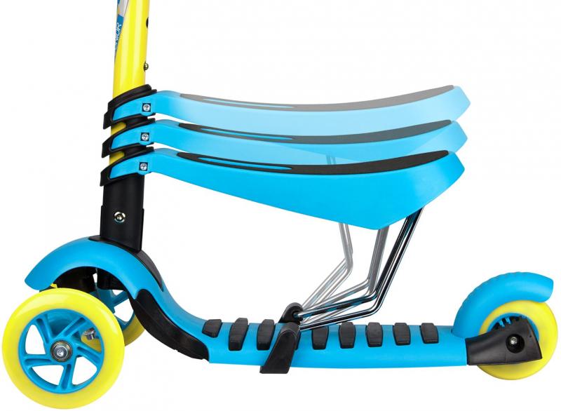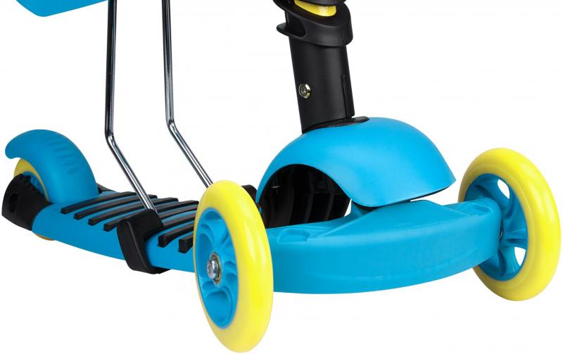 Raam: alumiinium. Libisemiskindel jalaaste. Käepidemed kummist. Reguleeritav käepideme kõrgus 58 > 63 > 66 cm, tagumine pidur, Esimesed rattad 125 x 24 mm, tagumine ratas 100 x 50 mm, ABEC 7 laagrid Kandevõime ca. 50 kg. Kaal: ca. 2 kg. Mõõtmed: 55 x 25 x 58/66 cm. Eemaldatav ja reguleeritava kõrgusega iste (24 > 27 > 30 cm).