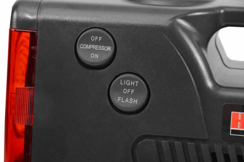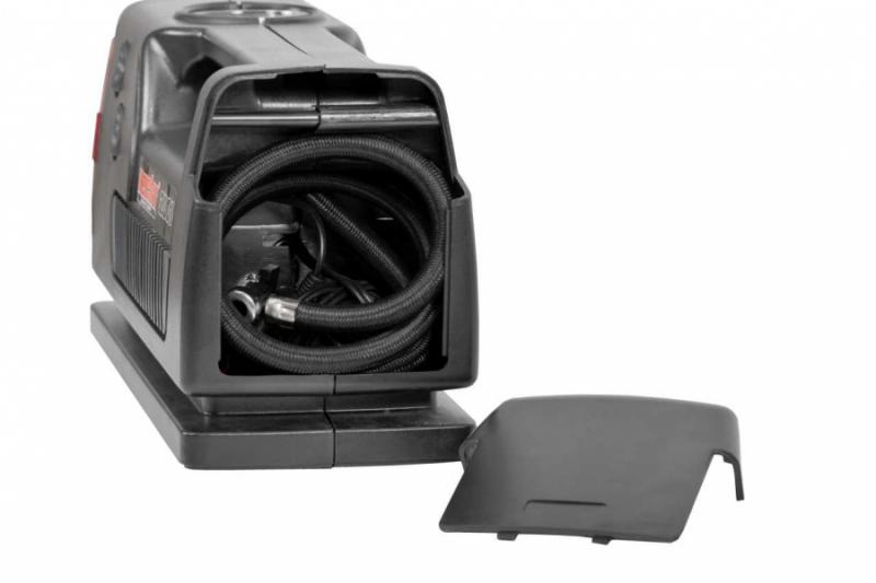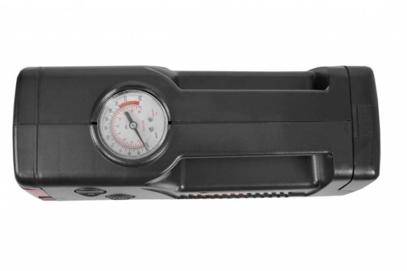Maksimaalne rõhk 17 bar, pinge 12 V, Võimsus 100 W. Toitekaabli pikkus 3 m. Õhuvooliku pikkus 55 cm. Manomeeter. Valgustus. Ohutule funktsioon. Komplektis erinevad pumpamise otsikud. Kaal 1 kg.