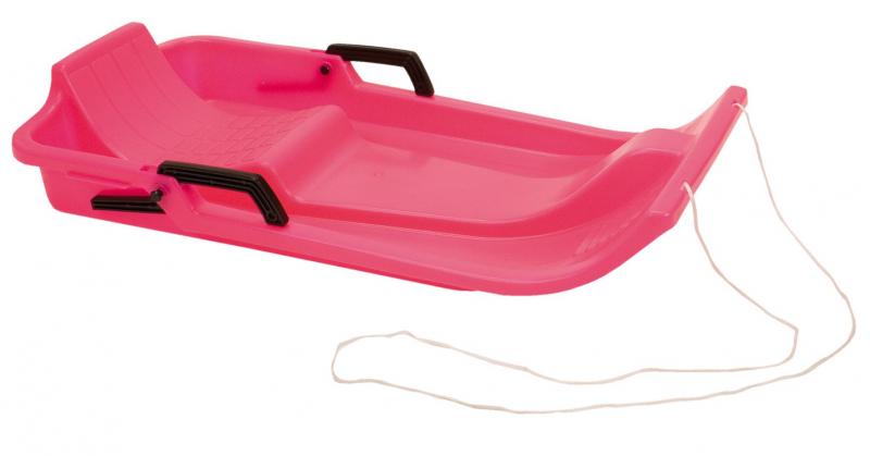100% polüetüleenplastik, 2 käsipidurit, kõrgem istmik, nöör. Mõõtmed: 83 x 42cm. Värv: roosa.
