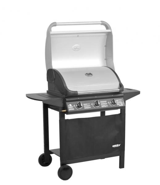 Gas grill - suitable for sheltered garden areas and exteriors. 3 burners, 2x enamel wire grill. Packing size: 835 x 625 x 310 mm.
