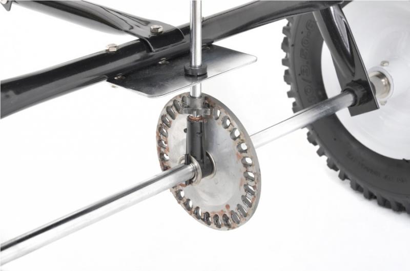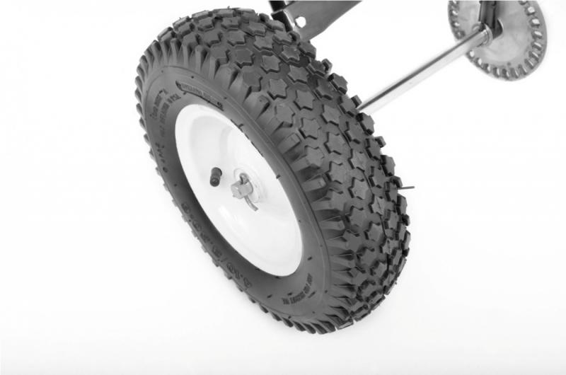 Manual spreader with tank volume of 60 litres. Designed for distribution of tertilizers and seeds, in winter even salt. Adjustment of distribution volume at grip. Tow-behind spreader for large areas of ground.