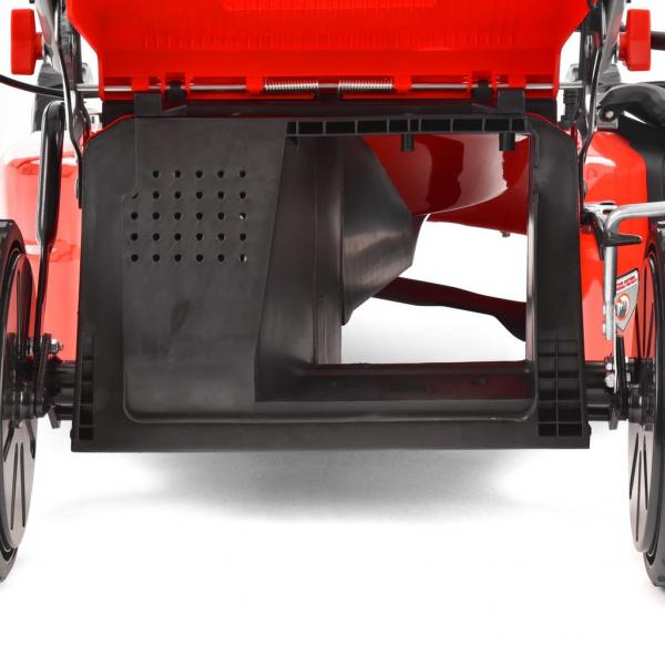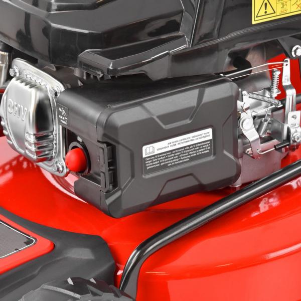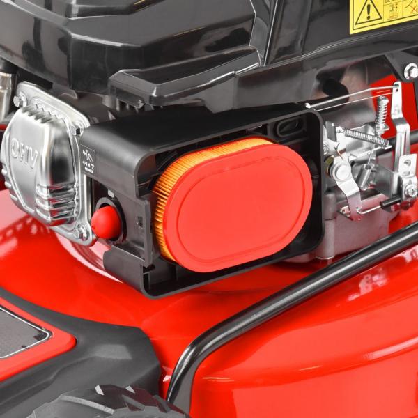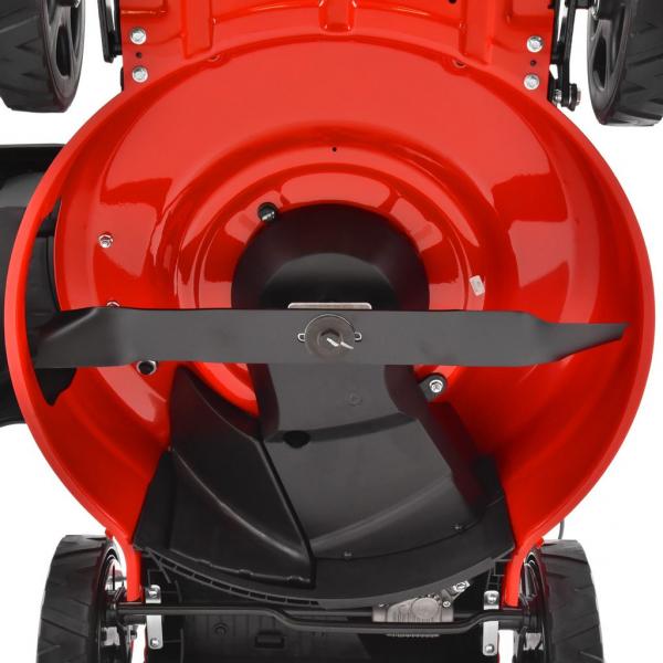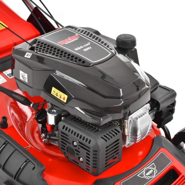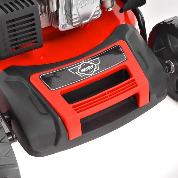 Самоходный. Электростартер. Скорость 3,6 км / ч. 4-х тактный бензиновый двигатель HECHT OHV 224 см3; запуск от ручного стартера или переключателя; ящик для сбора 75 л; ширина реза 53 см; высота скашивания 25 - 75 мм; вес 41 кг; центральная регулировка высоты скашивания; шариковые подшипники колеса; задний и боковой выбросы; мульчирование.
