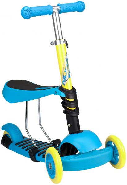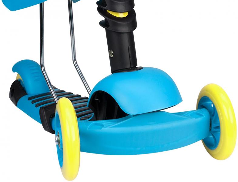 Frame - aluminium, deck - top PP, bottom plastic, handgrips - rubber, ball bearings - ABEC 7, 3-wheel scooter with double spoked castors at front, PU casted 120 x 24 mm, spoked rear wheel, PU casted 100 x 50 mm, rear footbrake, the adjustable seat is removable, so multi-functional in use as tricycle or scooter, steerable by leaning to the left or right, maximum load of 50 kg. Weight approx. 2 kg. Dimension frame - 55 x 25 x 58/66 cm. Height seat height in 3 positions adjustable - 24 > 27 > 30 cm. Handlebar can be secured in 3 positions - 58 > 63 > 66 cm.
