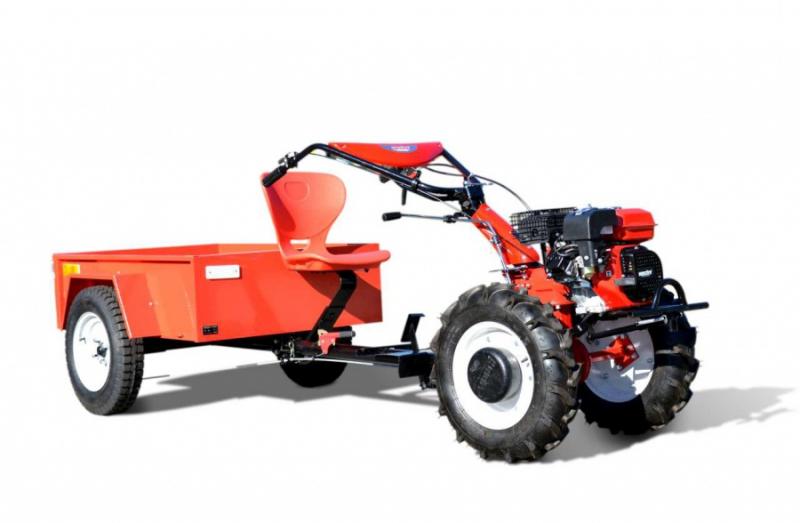 Set contains: tiller, 12" wheels for tiller, trailer (Dimensions 134 x 92 x 34 cm. Weight  112 kg. Wheels 12". Max. Load 300 kg net/500 kg including operator). Total weight: 93 - 100 kg.