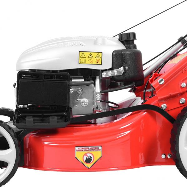 Бензиновая газонокосилка с приводом – самоходная, стальное шасси. Двигатель 4-тактный OHV 135 cm3. Захват ножа 46 см с рекомендуемой площадью кошения 1200 м2. Центральная pегулировка высоты кошения, шарикоподшипники. Yстановка высоту кошения: центральная, 25-75 мм. 4 скорости 3 - 4,5 km/h. Травосборник: 60 литров. Вес: 36,7 кг. Колеса спереди 8 "/ сзади 11".