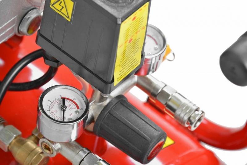Мощность 2200 Вт, питания 230 В / 50 Гц. Емкость составляет 316 л / мин. Двухцилиндровый двигатель 3 лошадиных сил. Индикатор уровня масла. Максимум давление 8 бар. Бак 50 литров. Автоматическое включение и выключение. Два манометра. Вес 36.20 кг.