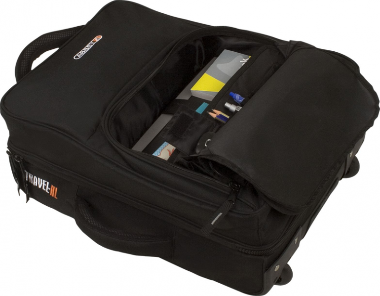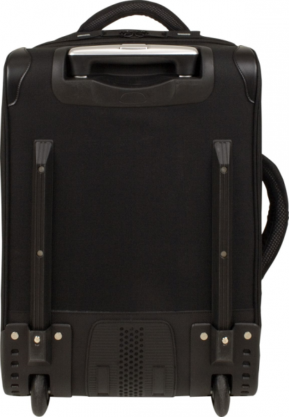 Model: main compartment with zip with 2 storage compartments with zip, telescopic trolley bar in aluminum look, 2 trolley wheels, front pocket with zip which contains a laptop compartment and storage boxes for example pens and telephone, protective PP material on the corners of the bag, solid handle with foam filling to the side and top of the bag, 2 plastic protectionstrips and 2 pads to bottom of the bag, with addresscard holder