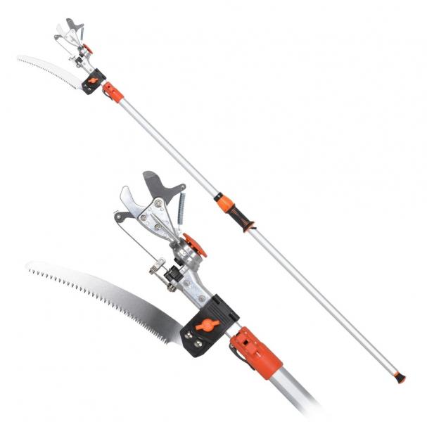Ручка изготовлена из легкого алюминиевого сплава и оснащена противоскользящими ручками. Длина отрегулирована от 200 до 356 см. Ножницы и пила может вращаться на 180 °. Вес ок. 1,9 кг.