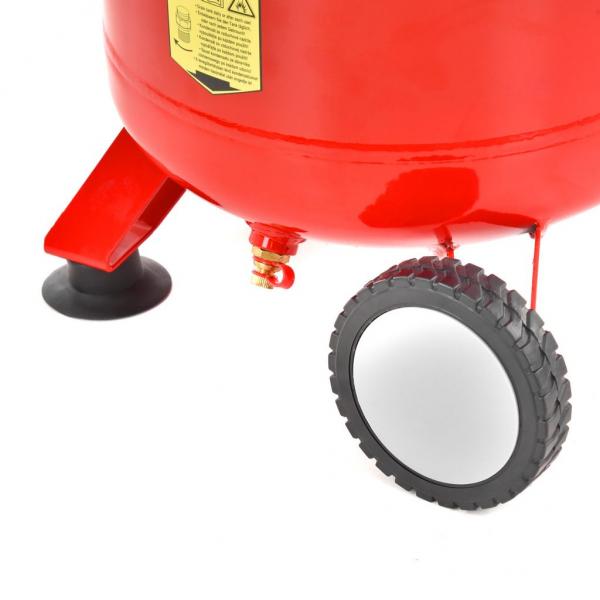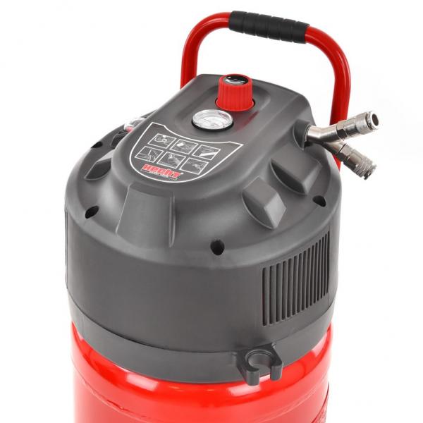 Безмасляный компрессор. Бак 50 л, максимальное давление 10 бар, максимальная производительность 240 л / мин. Потребляемая мощность 1500 Вт, питание 230 В / 50 Гц, вес 22,5 кг.